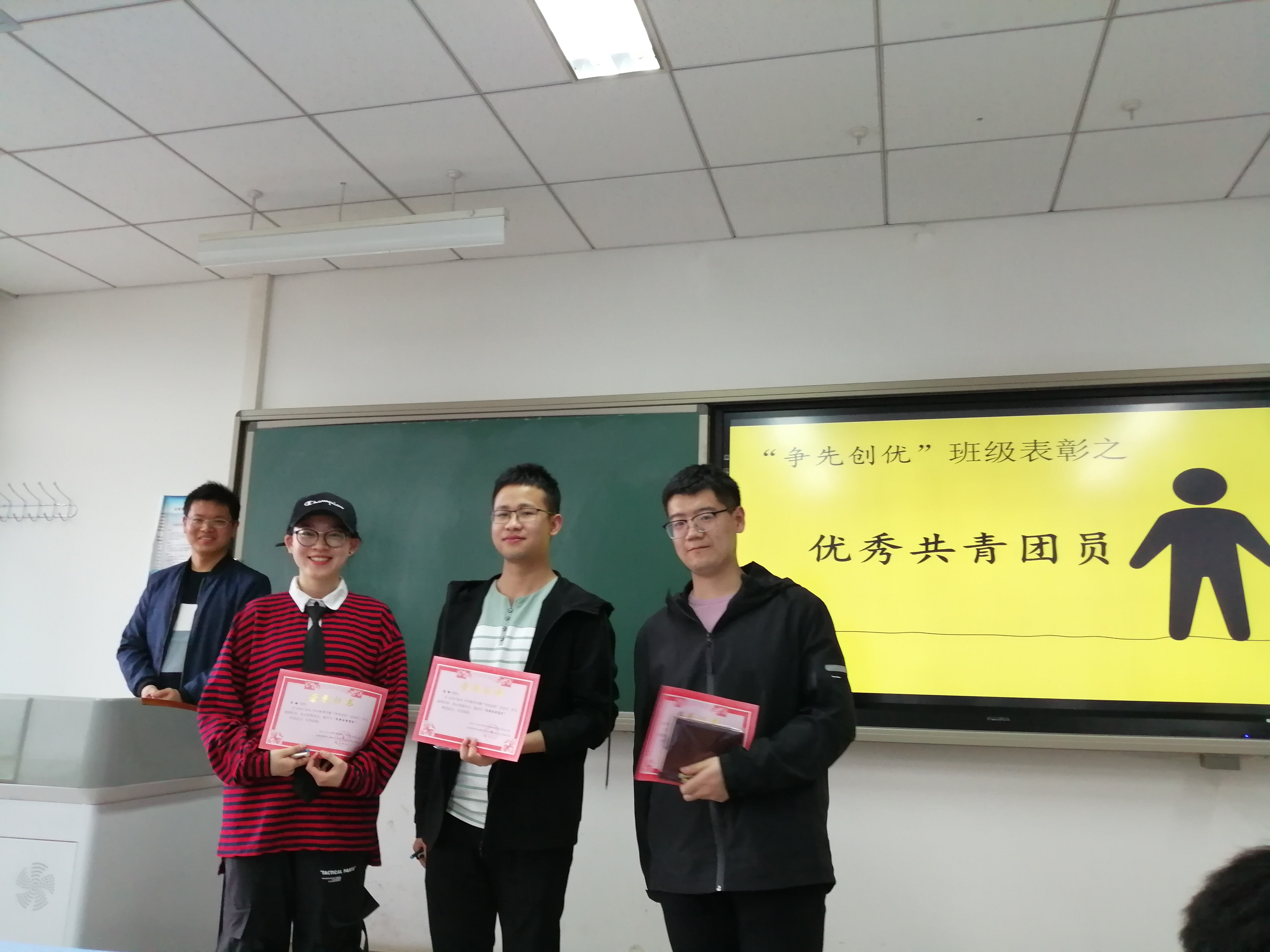 接着在班长对本班秋季学期班团建设、学习科研、文化活动等方面进行了简单的回顾与总结后,本次班会便进入了主题环节——对2018-2019学年秋季学期班级“争先创优”工作进行表彰。