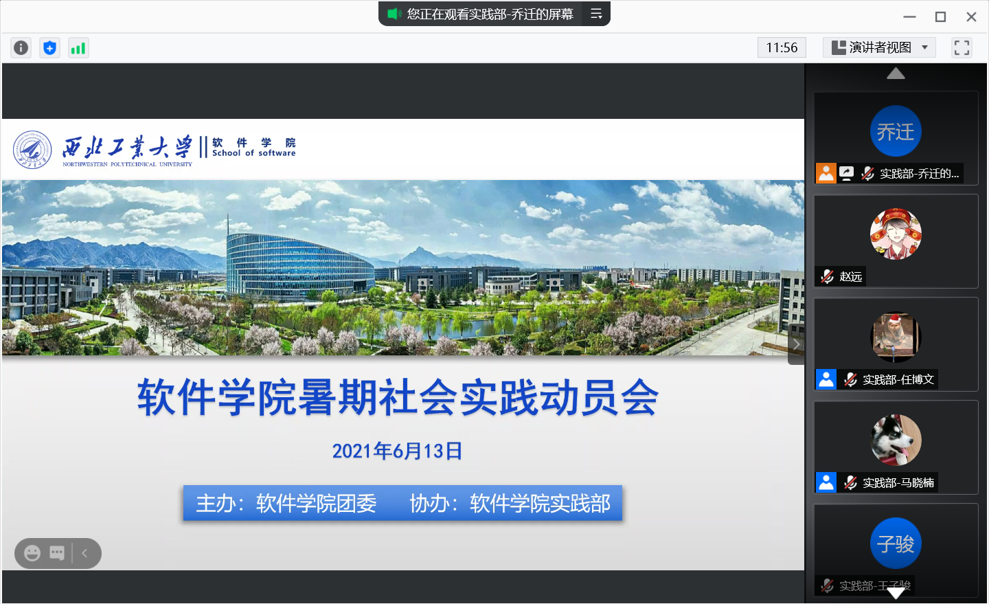 暑期社会实践动员会顺利落下帷幕。本次会议旨在解读实践通知、答疑相关问题,会议由实践部乔迁主持,实践部工作人员及2020级学生参与本次线上会议。