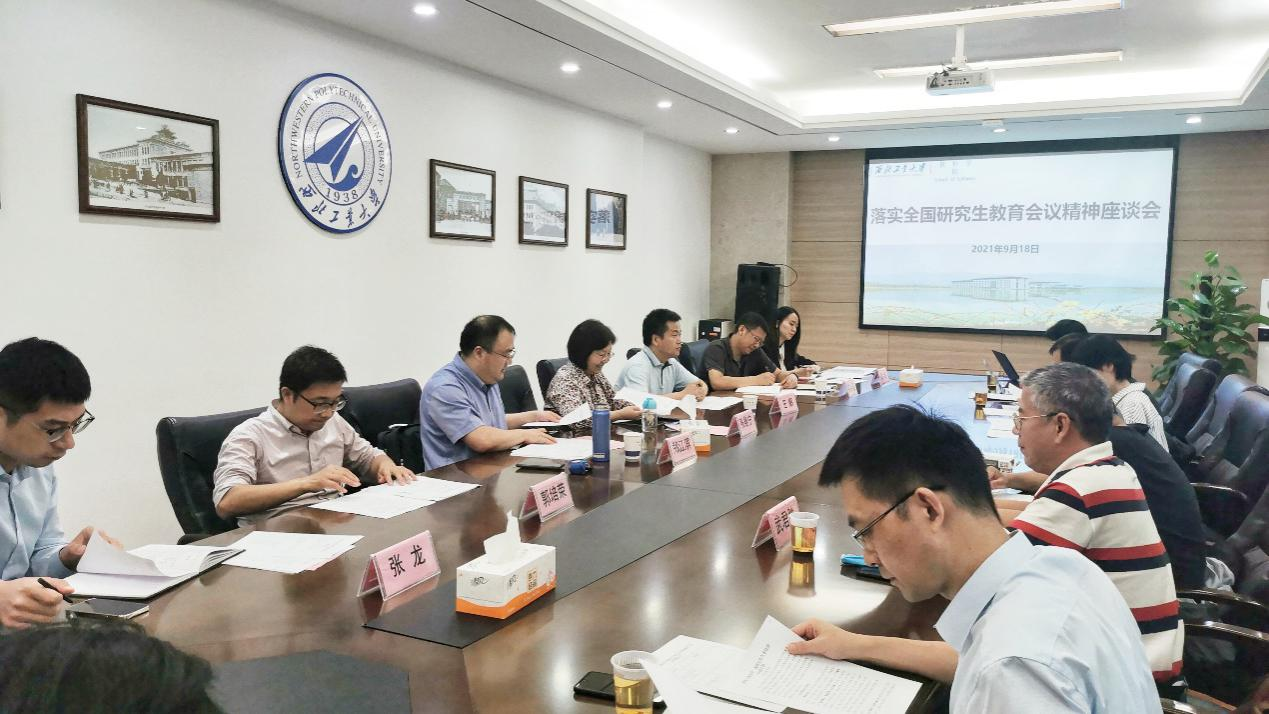 于9月18日下午,在友谊校区学校办公楼A座223会议室召开了进一步落实全国研究生教育会议精神座谈会。校长助理兼研究生院院长张艳宁,研究生院副院长王鹏、质量办公室张洁,蜜桃传媒