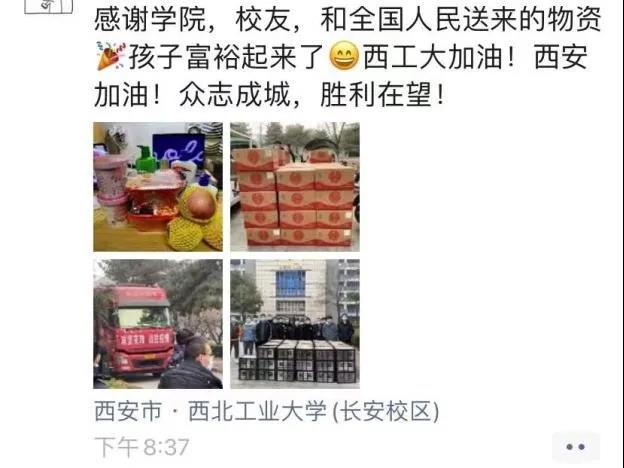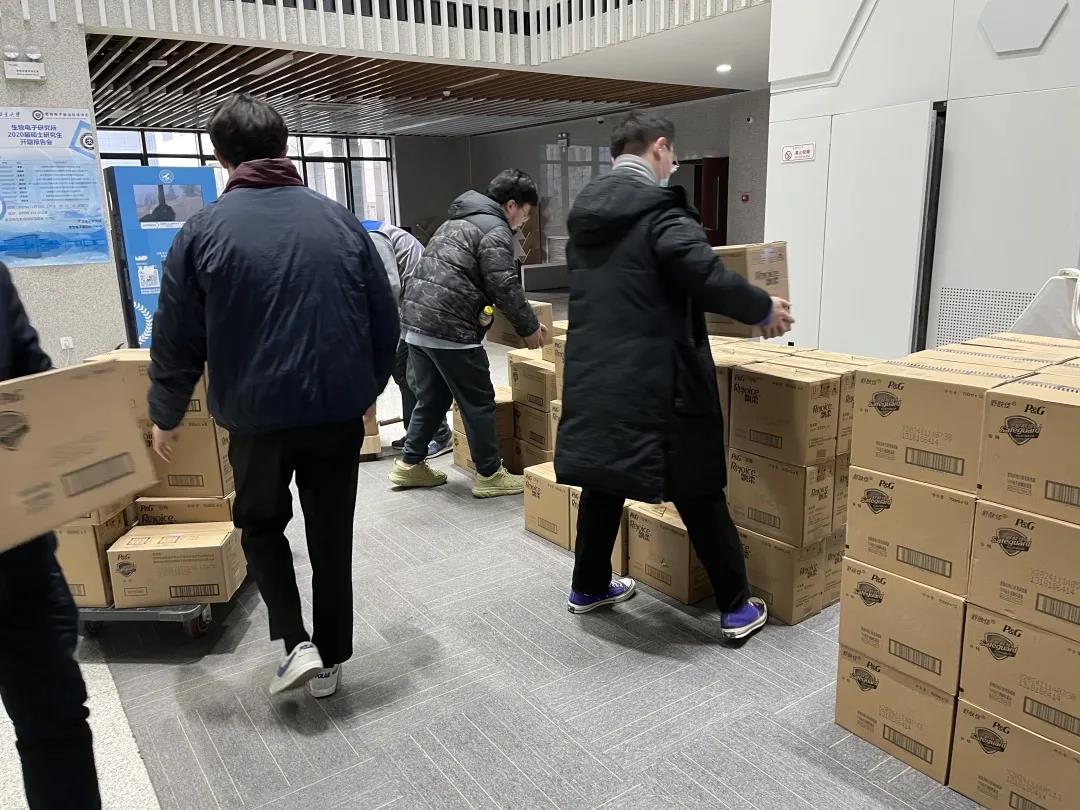 西安校友会发起,全国各地校友会响应,紧急捐赠的一批防疫保障物资,学院在西安、北京、长三角、珠三角四地校友会的同学们,通力协作,在短时间募集了6万7千余元捐款,并在24小时内根据在校同学们的需求,协调采购生活物资,联系运输车辆,针对物资进行消杀后,迅速发运至学院。同时,学院也根据学生在校情况迅速制定了物资发放方案和清单,并动员各年级学工干部和各楼宇学生志愿者将防疫保障物资发放到了学生手中。