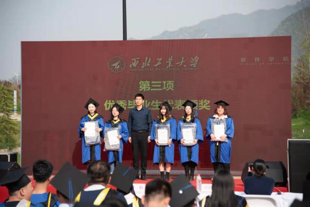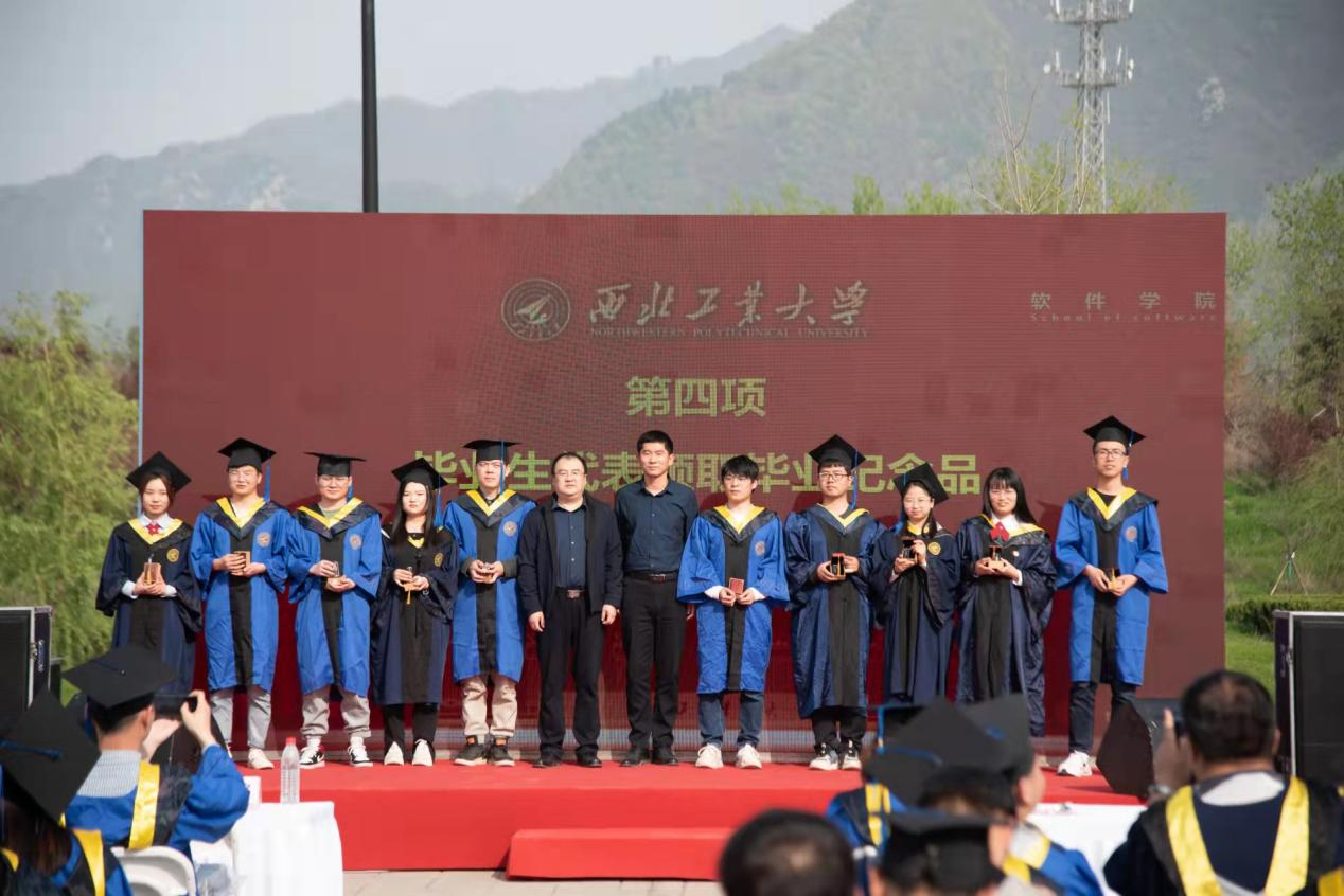 典礼的尾声,老师和毕业生们共同唱起《西北工业大学校歌》,在熟悉的旋律过后,拨穗环节开始了,伴着音乐,郑江滨和李晗面带微笑,迎接着一位位优秀的软件学子,同学们依次走上前,享受着属于自己的毕业时刻。在不到三年的时光里,同学们已经从青涩的少年成长为国家的栋梁,将继续昂扬向上,奔赴祖国各地开启新的篇章。
