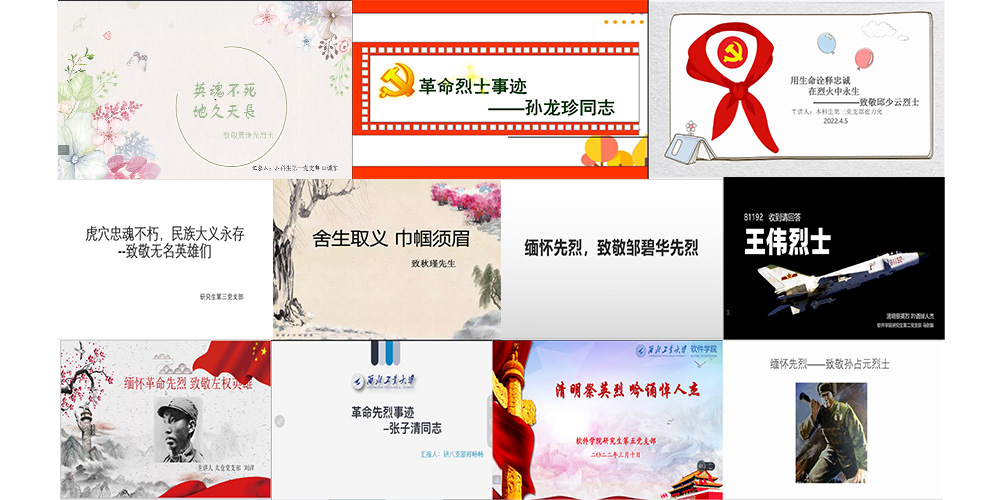 各学生党支部通过分享革命烈士故事、诗歌创作、诗歌朗诵等形式缅怀先辈、铭记革命先烈光荣事迹,学习革命烈士的大无畏精神。重读一个个红色故事,重温一个个光荣事迹,总是给人以震撼心灵的精神力量。信仰如磐,志坚如钢,英烈是历史天空中最闪亮的坐标,英烈精神如同熊熊燃烧的火炬,始终照亮我们前行的道路。