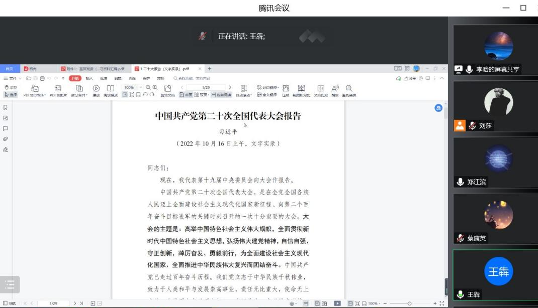 党委理论学习中心组召开线上会议,集中学习讨论党的二十大报告。