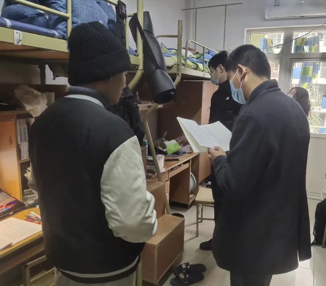 在走访慰问中,李晗亲切询问同学们假期生活及返校感受,逐一了解大家的基本情况,特别强调了宿舍用电安全及宿舍卫生,提醒同学们切勿在阳台堆放杂物,并且叮嘱同学们在校期间提高安全防范意识,确保人身财产安全,遇到困难要第一时间联系辅导员,寻求老师的帮助。他还勉励学生及时调整状态,尽快回归校园生活,在近期的考试中希望同学们合理安排好复习时间,以取得优异的成绩。