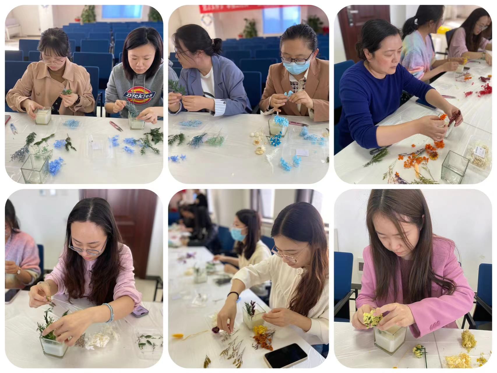 工会组织女教职工们参加干花香薰体验活动。