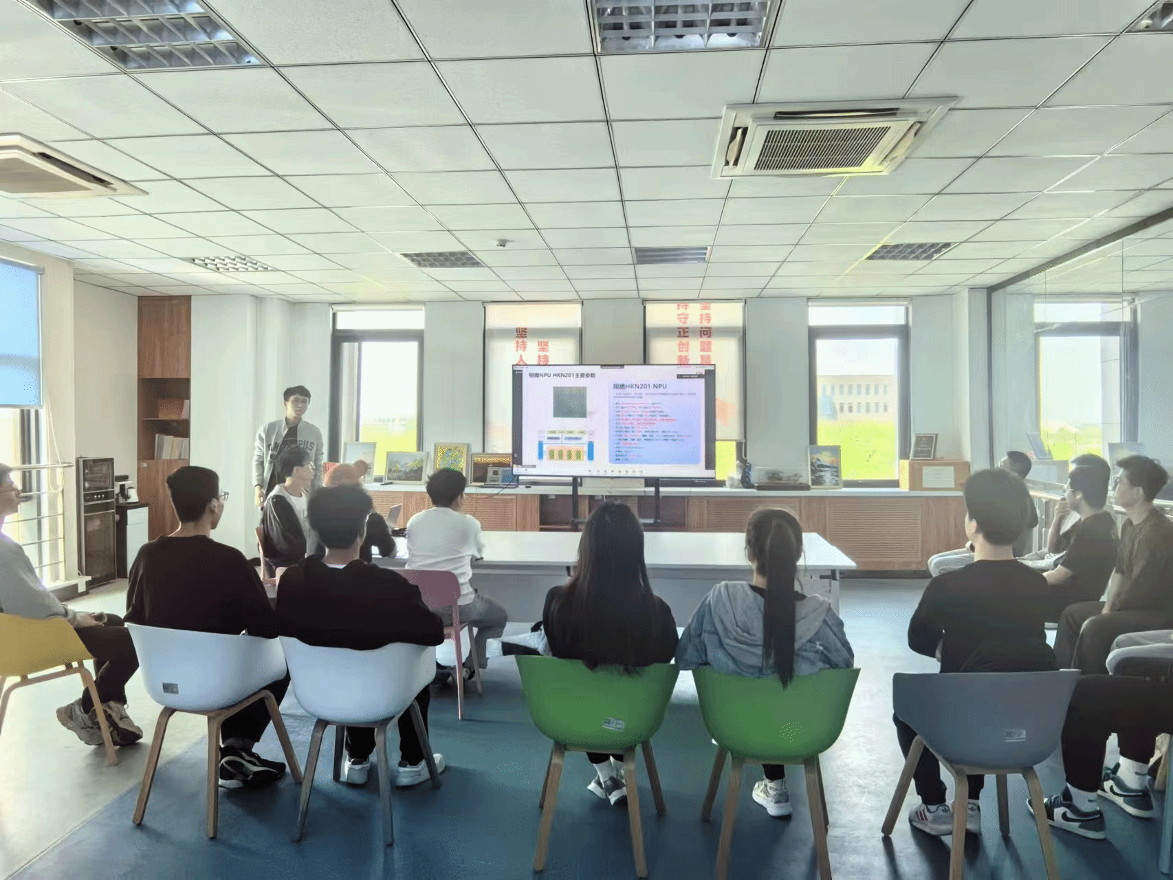 随着人工智能技术(AI)快速发展,GPU/NPU等超强算力芯片已成为AI 实现的重要物理载体。为进一步推动学院软件领域创新发展,深化院企科研、教学融合,建设全方位深层次的“硬件+软件”生态合作,4月12日下午,学院“总师工程”系列培训之“NPU的开发能力培训与生态建设”在启翔楼301、303、401同步举行。西安翔腾公司高级工程师秦翔、毕瑞星、翟相君,蜜桃传媒 青年教师代表刘春、李鸿岐、王丽,以及学院本科生和研究生共100余人参会。