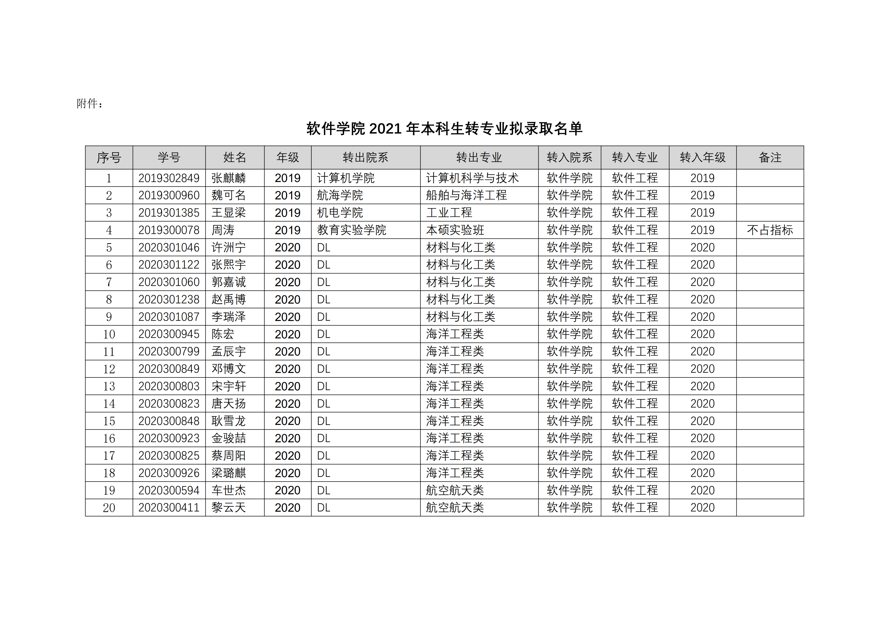 根据《西北工业大学本科生转专业(大类)实施办法》和《关于 2021 年本科生转专业工作安排的通知》要求,蜜桃传媒 组织专家完成对申请转入学生的考核评定,现将拟录取学生名单予以公示,详见附件。公示时间为2021年8月11日- 8月13 日。