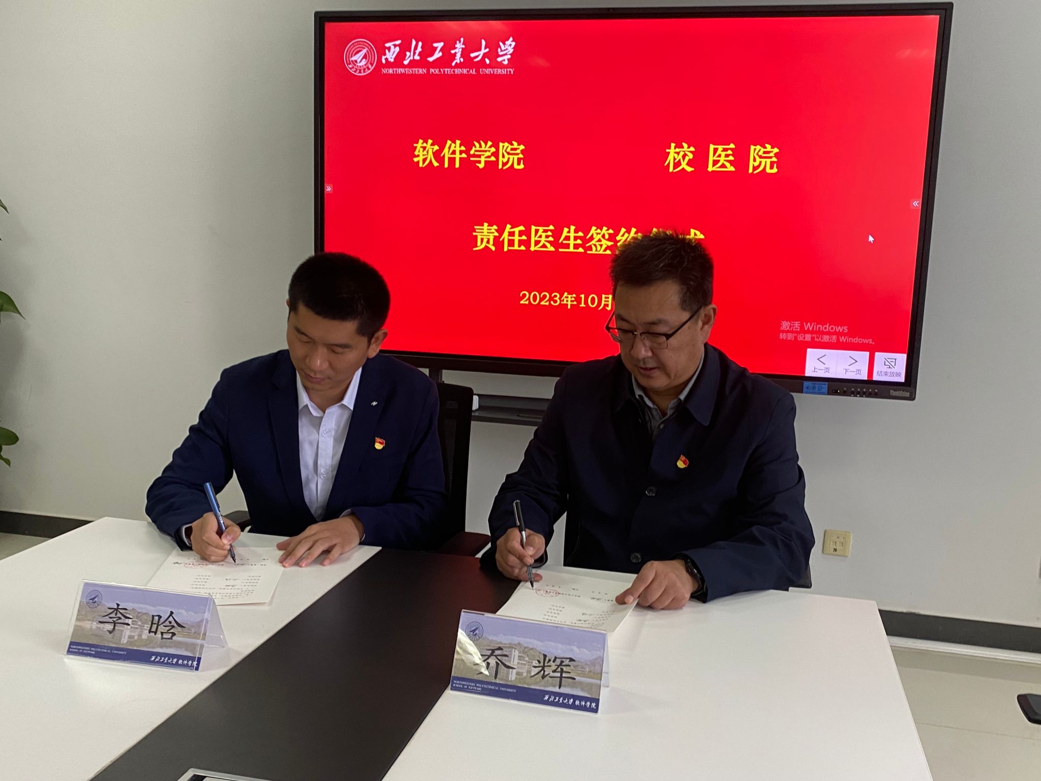 在两个支部党员代表的共同见证下,李晗和乔辉代表双方的党支部签署了学院责任医师协议,王宇英和贺文娟签订了党支部联学共建协议。